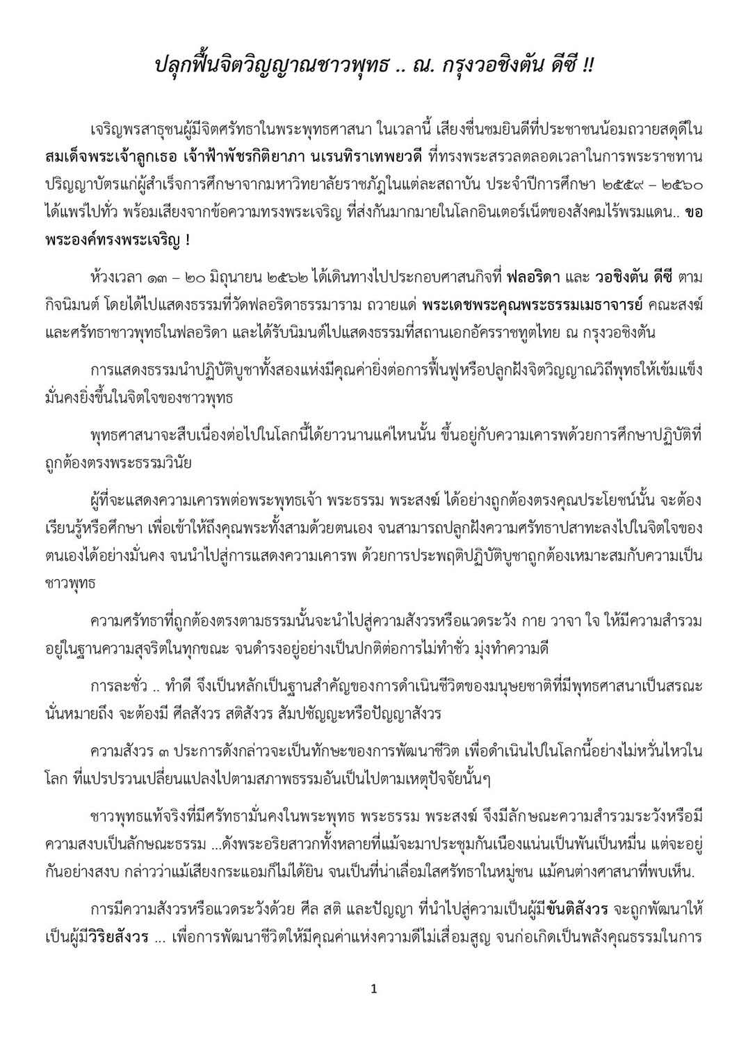 "การแสดงธรรมโดยพระครูภาวนาวิริยวัฒน์ (พระอาจารย์อารยวังโส) เจ้าอาวาสวัดป่าพุทธพจน์หริภุญไชย จ.ลำพูน ที่รัฐฟลอริดา และกรุงวอชิงตัน สหรัฐอเมริกา"